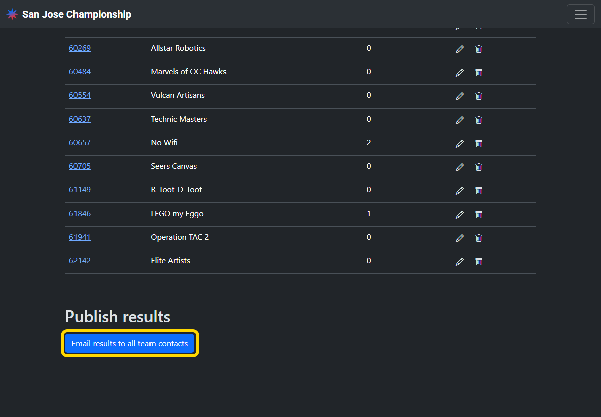 Tap the Email results to all team contacts button. It may take a minute for all scoresheet, rubric, and awards PDFs to be generated and sent to all contacts.